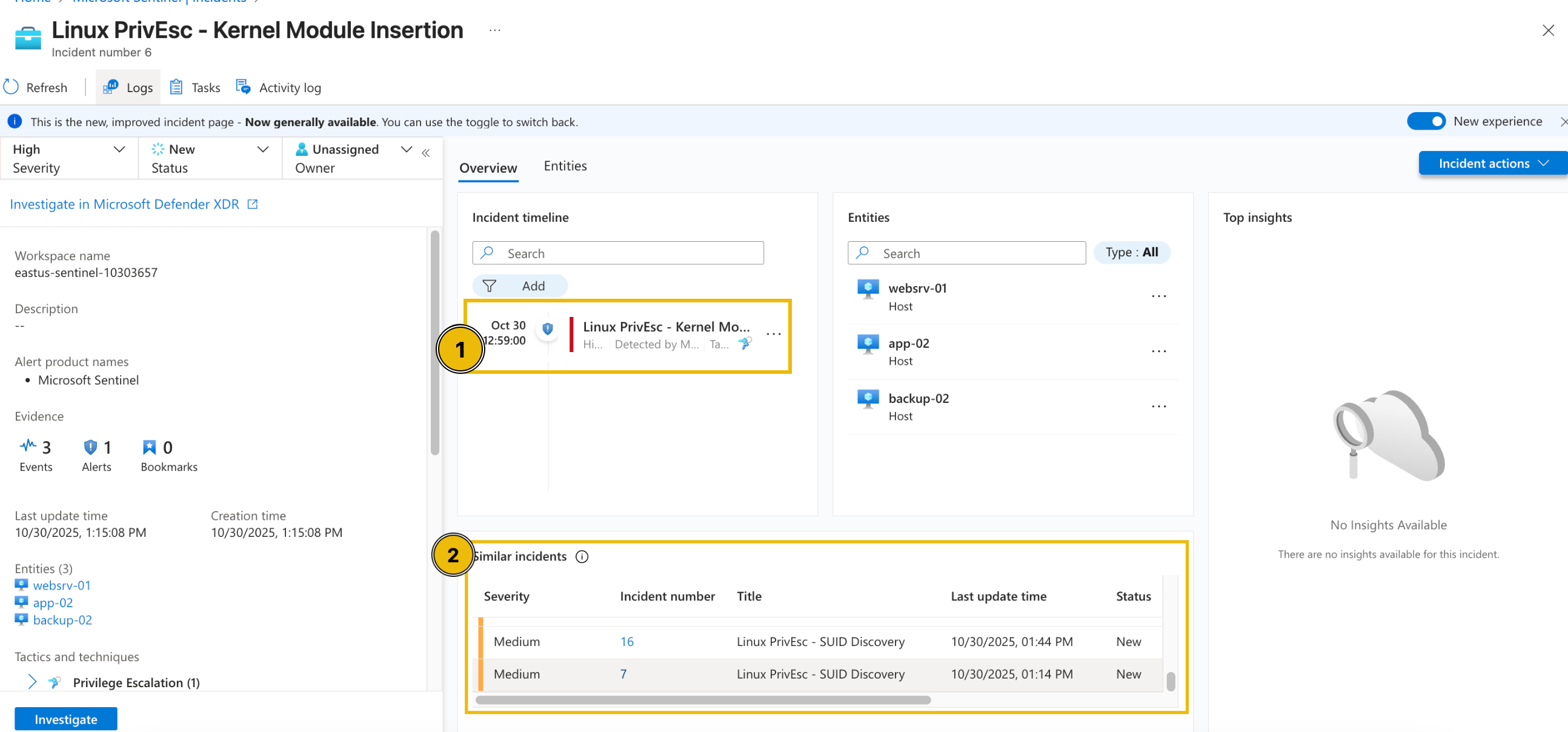 In the new view, we can see that in addition to the details shown in the summary, we can also view the possible Incident Timeline and Similar Incidents.