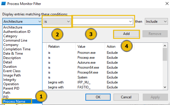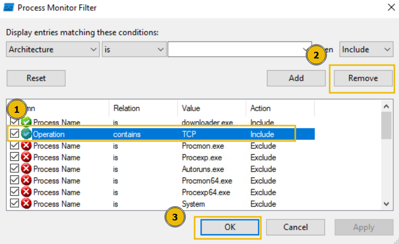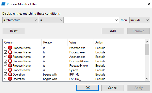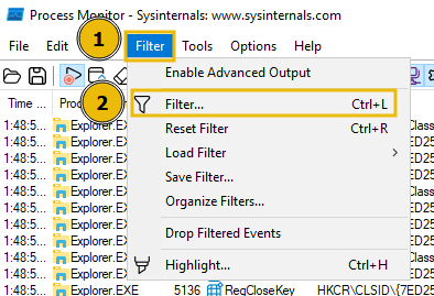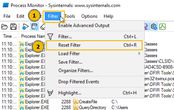 Once done, returning to the main Process Monitor window, we can already see the filter has worked.