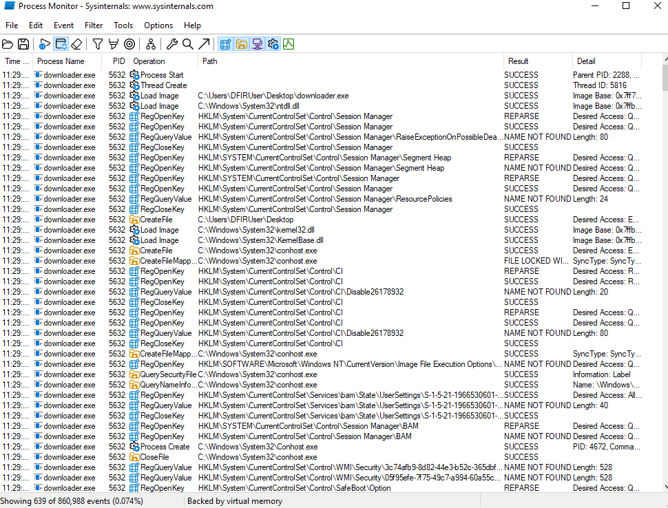 Now it is much easier to investigate how the process is interacting with the operating system. Here are some Operations that may be of interest to us:
