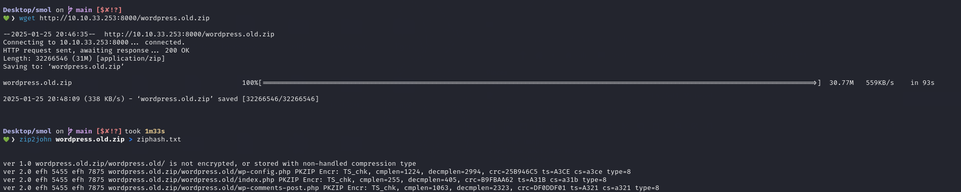 Using a Python HTTP server on the target, the zip file was downloaded to the local machine.